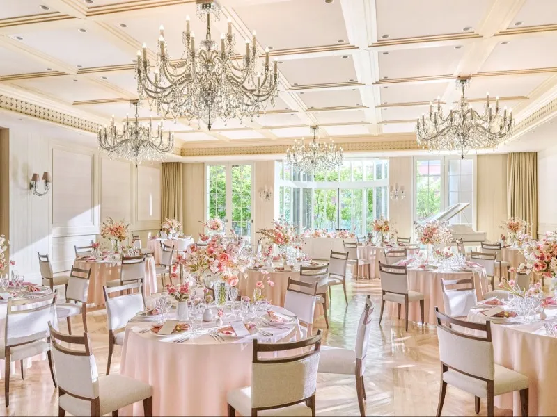 【テラス併設&オープンキッチン付き】◆リニューアルして開放感UP!華やかで明るいパーティ会場◆人気のテラス入場やデザートビュッフェなど、ゲストと和やかな時間をすごす演出をご提案します
